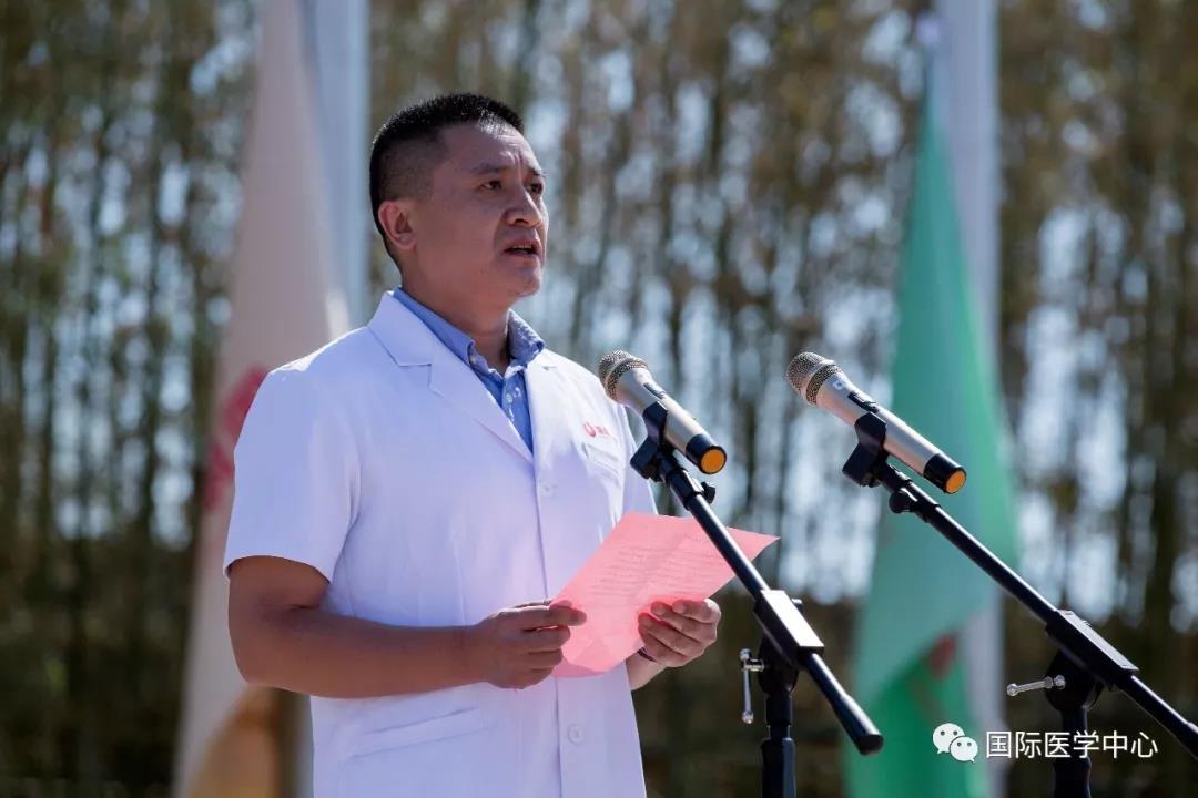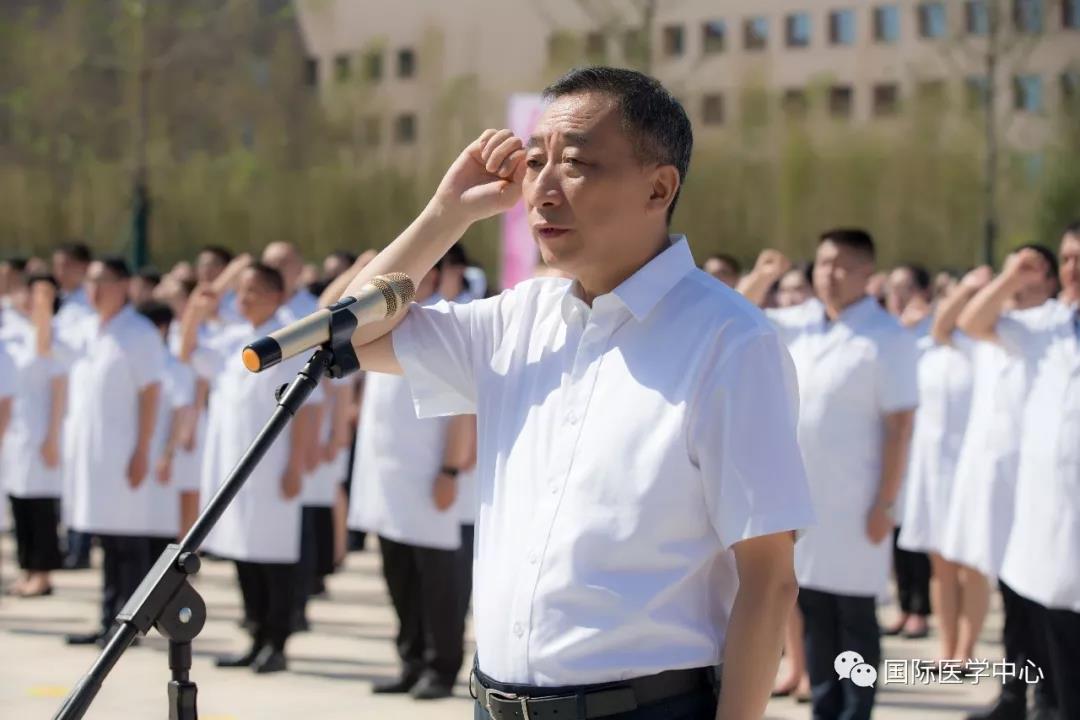 儀式開始,王志峰總經(jīng)理發(fā)表了熱情洋溢的致辭,歡迎來自五湖四海的各位醫(yī)療及醫(yī)療保障工作者們,并祝賀大家成為西安國際醫(yī)學(xué)中心的開拓者、創(chuàng)業(yè)者。他表示,經(jīng)過近一年的密集籌備、人員引進(jìn),我中心首批員工到崗,其中學(xué)科帶頭人和骨干來自全國知名三甲醫(yī)院,可謂人才濟(jì)濟(jì),精英薈萃,具備揚(yáng)帆遠(yuǎn)航的實(shí)力。全體員工是西安國際醫(yī)學(xué)中心建設(shè)的基石、發(fā)展的核心動(dòng)力。合格的國際醫(yī)學(xué)人,應(yīng)該是以至善之心博愛天下,以服務(wù)社會(huì)積微致遠(yuǎn)。秉承讓“患者有尊嚴(yán)的生活,醫(yī)者有尊嚴(yán)的工作”的價(jià)值觀,珍惜機(jī)遇,牢記誓言,不忘初心,砥礪前行。匯聚人類生命科學(xué)智慧,同步國際頂尖診療水平。為了一個(gè)共同的目標(biāo)凝聚一起,共同“佑護(hù)無法衡量的價(jià)值”!