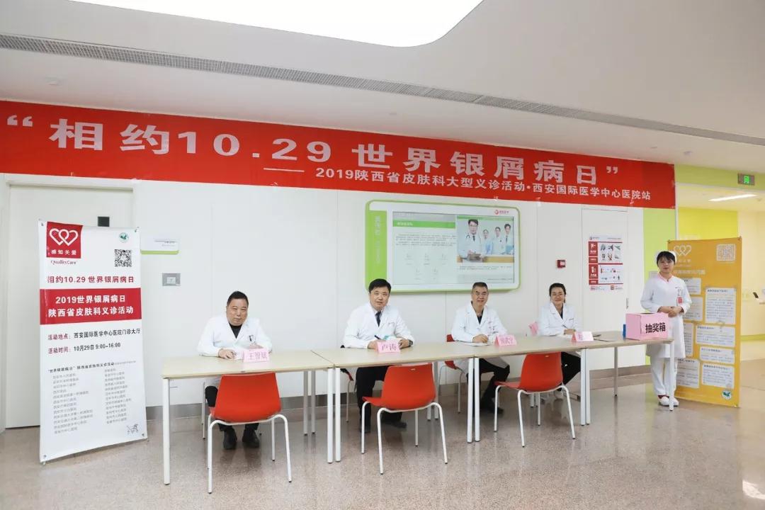 10月29日是第十六個(gè)“世界銀屑病日”,西安國際醫(yī)學(xué)中心醫(yī)院皮膚美容科在綜合門診D2樓皮膚美容科診區(qū)門口開展“世界銀屑病日”大型義診活動(dòng)。在皮膚美容科盧濤主任的帶領(lǐng)下,房武寧主任醫(yī)師、王智斌主治醫(yī)師、趙玢主治醫(yī)師等醫(yī)護(hù)人員為患者貼心服務(wù)。