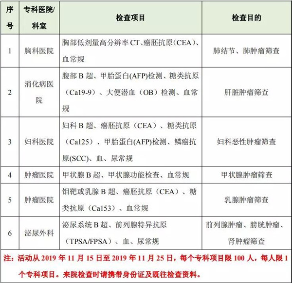 腫瘤篩查項目表