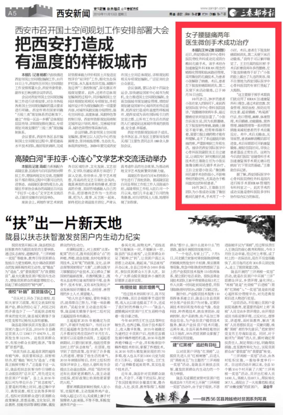 三秦都市報報道—女子腰腿痛兩年 醫(yī)生微創(chuàng)手術(shù)成功治療。點擊閱讀。