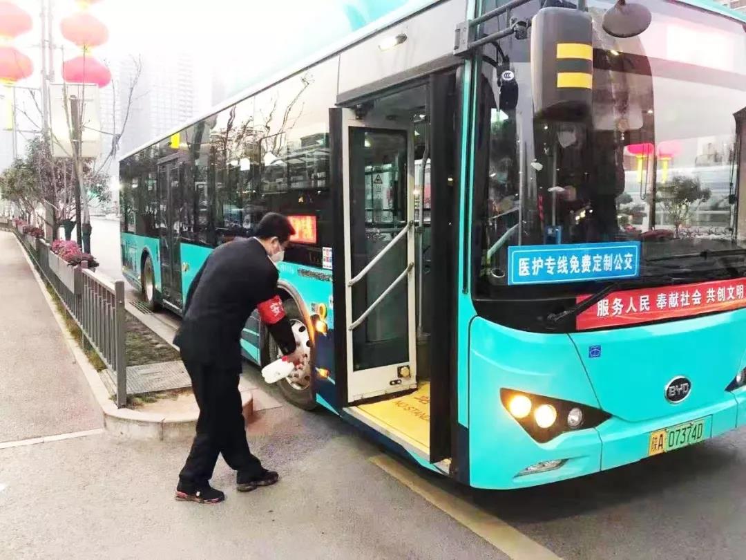 疫情期間,西安市公交五公司為醫(yī)院開通專線公交車(地鐵3號線延平門站?西安國際醫(yī)學中心醫(yī)院),為醫(yī)務人員提供免費通勤服務。公司還嚴格執(zhí)行駕駛人員測量體溫和車輛消毒的規(guī)定,保障醫(yī)務人員用車絕對安全。