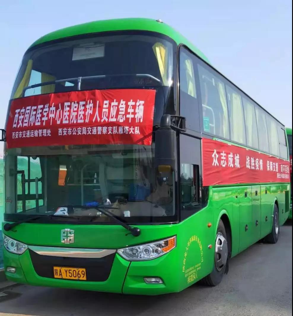 陜西光大外事旅游車務有限公司也無償為西安國際醫(yī)學中心醫(yī)院提供8輛大巴車,用于接送醫(yī)務人員上下班,并為醫(yī)護人員提供點對點的通勤服務。