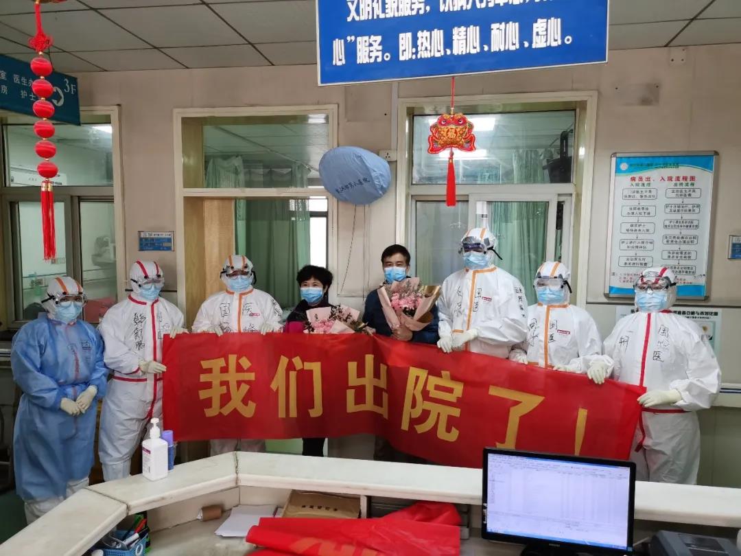 這對(duì)夫妻的母親及姐姐一家四口,都因?yàn)樾鹿诓《痉窝鬃∵M(jìn)了武漢第八醫(yī)院一病區(qū),經(jīng)過(guò)韓主任及科室醫(yī)護(hù)人員的精心治療和護(hù)理,四個(gè)人病情均有好轉(zhuǎn)。今天妹妹、妹夫的各項(xiàng)檢查均符合出院指標(biāo),就要出院了。