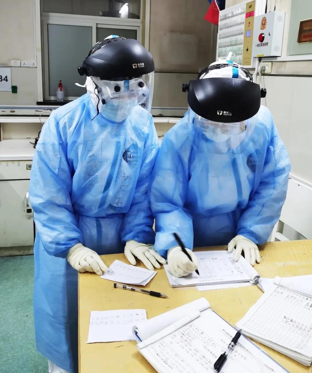 西安國際醫(yī)學中心醫(yī)院赴武漢醫(yī)療隊的隊員們在進入武漢第八醫(yī)院工作后,團結一致,積極進取,不怕困難,不怕吃苦。剛開始,史璐護士長等隊員按照統(tǒng)一安排,負責酒店消殺流程制度的制定與落實,隊員生活物品及餐食的發(fā)放,以及消殺工作。她們工作任勞任怨,一絲不茍,在現(xiàn)有條件下為前方戰(zhàn)友提供最大最好的安全保障。之后,根據(jù)工作的需要,她們被分別調(diào)配到各病區(qū)、隔離病房以及督導組。在督導組,她們8小時輪換,24小時在崗,督導隊員們穿脫防護服,進行地面、空氣、物表的消毒,護目鏡、面屏浸泡消毒擦拭備用,及時反饋當天在穿脫過程中存在的問題……
