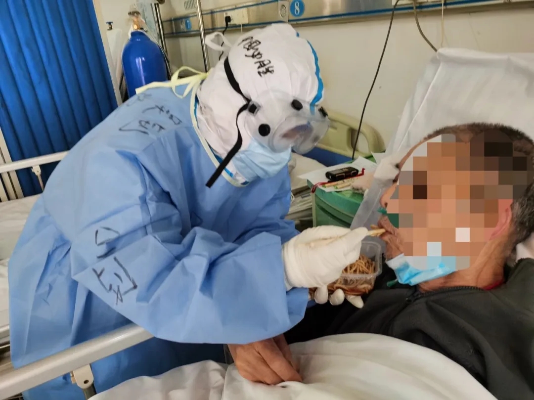 最近,我們病區(qū)來了一群特殊的新冠肺炎患者,他們大多數(shù)都是八十歲以上的老人,有的生活不能自理,除了日常的治療以外還需要生活護理,喂飯、喂水、喂藥、換紙尿褲等,都需要護士姐妹們來照顧。