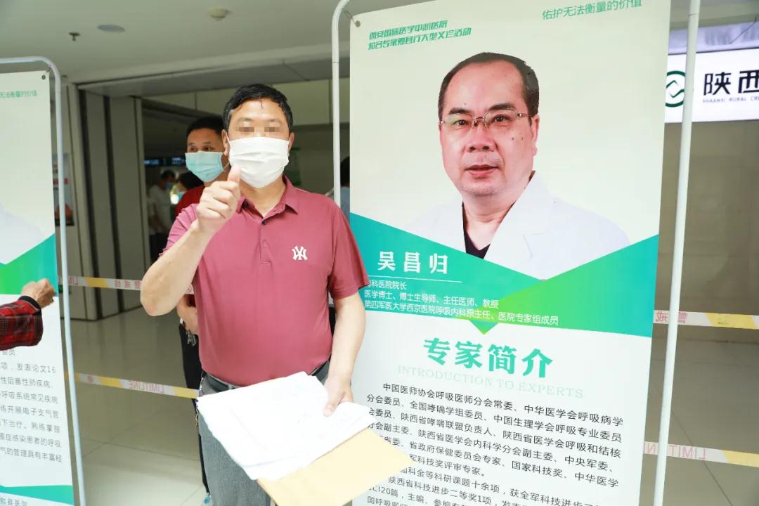 “聽(tīng)吳院長(zhǎng)給我說(shuō)的這些話(huà),我現(xiàn)在一點(diǎn)都不怕了,心里真的踏實(shí)了?!本驮\后,郭先生專(zhuān)門(mén)和吳昌歸院長(zhǎng)的海報(bào)合了一張影!