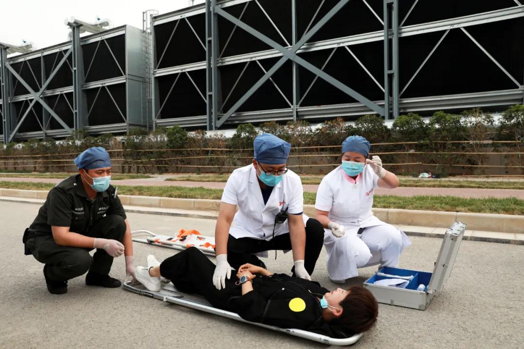 隨后院長尹強通過對講機發(fā)出演練開始指令。在觀摩組的注視下,一支由22輛急救車及20組醫(yī)、護、工人員組成的救援隊立刻趕赴模擬的重大交通事故現場進行應急救援。