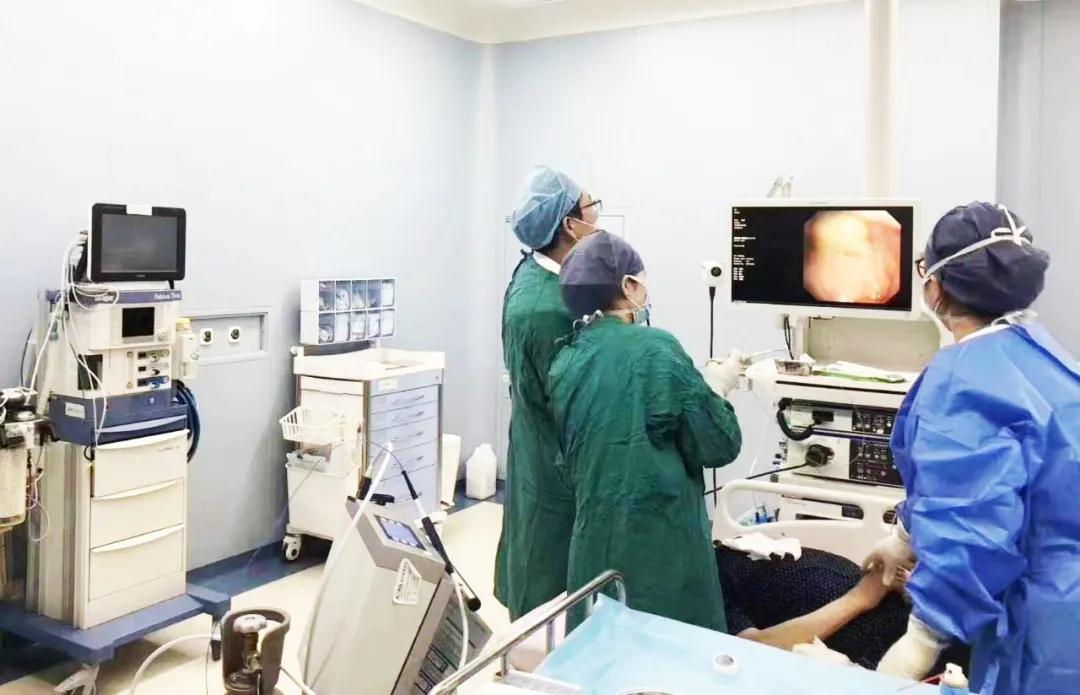 呼吸內(nèi)科二病區(qū)韓新鵬主任得知后,考慮患者存在氣管內(nèi)異物,需緊急處理,第一時間匯報胸科醫(yī)院吳昌歸院長,并立即趕赴醫(yī)院,部署各項工作。在吳昌歸院長的指導(dǎo)下,韓新鵬主任帶領(lǐng)科室團隊(樊建勇副主任醫(yī)師、張黎媛主治醫(yī)師、氣管鏡室陳娟等人),為患者實施“電子支氣管鏡冷凍治療術(shù) 異物取出術(shù)”?;颊呷朐翰坏?小時,就徹底解決了呼吸道阻塞的問題。
