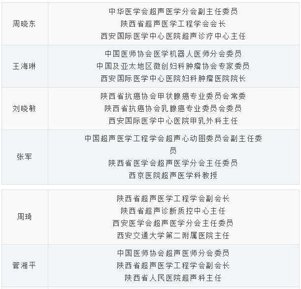 本次義診的醫(yī)護團隊陣容不僅專業(yè)面廣而且水平高,僅超聲科就聚集了西安市各大醫(yī)院的超聲科主任一起深入基層為平利的女同胞們義診。他們是: