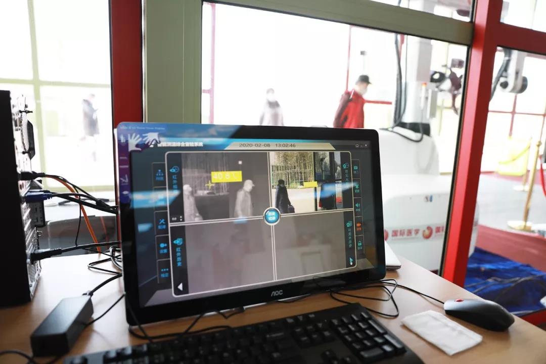 西安國(guó)際醫(yī)學(xué)中心醫(yī)院在三個(gè)主要通道均設(shè)立體溫檢測(cè)點(diǎn),逢人必檢、逢疑必核。當(dāng)被測(cè)目標(biāo)在紅外鏡頭探測(cè)器鏡頭8米內(nèi)快速經(jīng)過時(shí),儀器在1秒鐘內(nèi)便可顯示人體熱圖像和最高體溫標(biāo)度。若被檢測(cè)者體溫異常,該系統(tǒng)便立即報(bào)警并拍攝體溫異常者圖像。