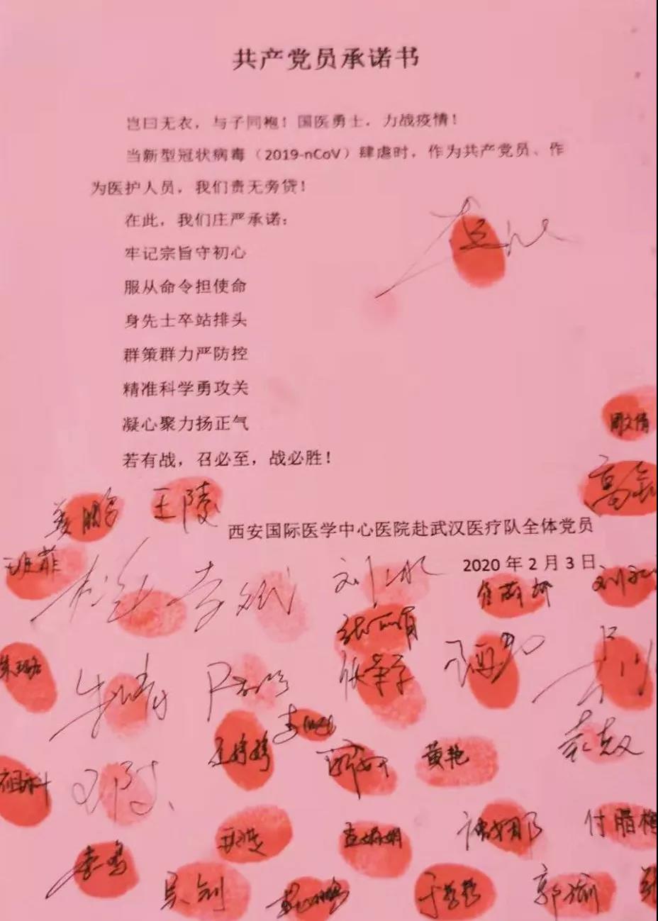 2月3日,西安國際醫(yī)學(xué)中心醫(yī)院赴武漢醫(yī)療隊(duì)抗擊新型冠狀病毒感染的肺炎承諾踐諾書一經(jīng)發(fā)布,又有一批批醫(yī)護(hù)人員紛紛遞交請(qǐng)戰(zhàn)書、入黨申請(qǐng)書。