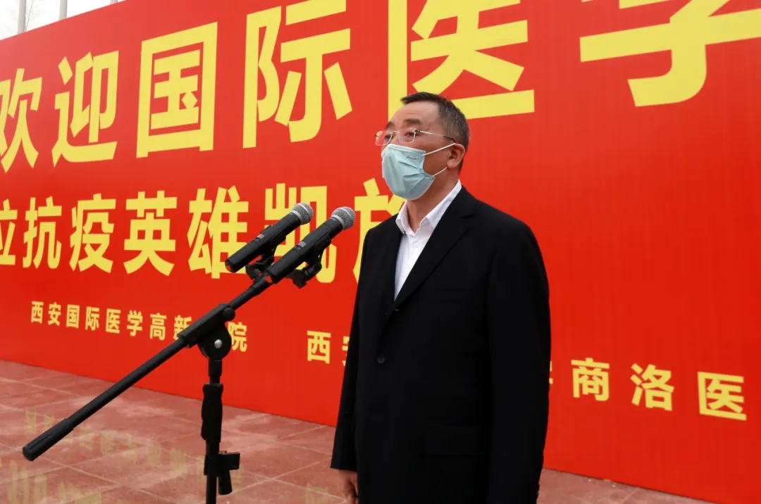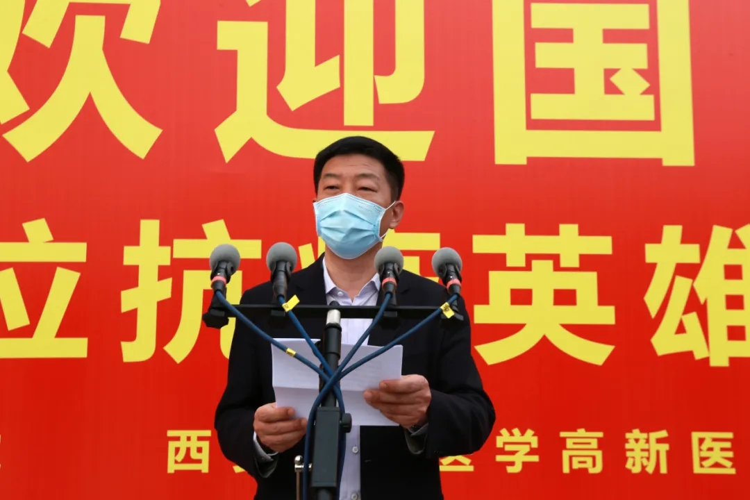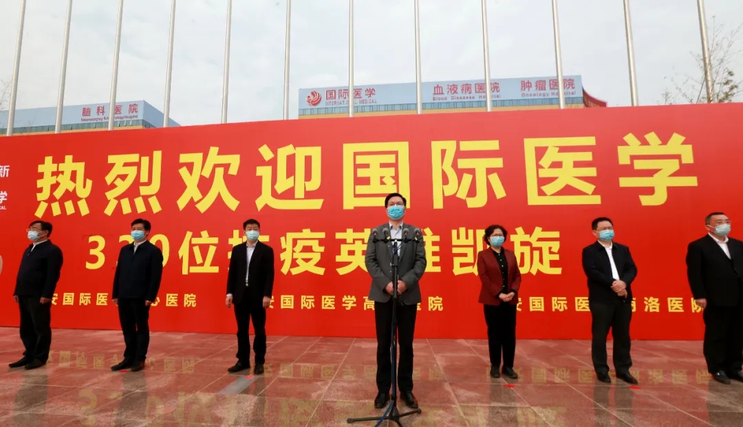 “歡迎回家!”在西安國際醫(yī)學(xué)中心的萬人廣場,陜西省副省長趙剛,國務(wù)院應(yīng)對新冠肺炎疫情聯(lián)防聯(lián)控機制綜合組第十二工作指導(dǎo)組組長、國家衛(wèi)健委人才中心主任、黨委書記張俊華,省衛(wèi)健委書記劉勤社,省衛(wèi)健委主任劉寶琴,省衛(wèi)健委副主任、省保健局局長趙嵐,省衛(wèi)健委副主任劉嶺,西安市委常委、高新技術(shù)開發(fā)區(qū)黨工委書記、西安民用航天產(chǎn)業(yè)基地黨工委書記鐘洪江,國際醫(yī)學(xué)董事長史今、總裁劉瑞軒、副總裁孫文國、西安國際醫(yī)學(xué)中心醫(yī)院院長尹強等出席歡迎儀式,向醫(yī)療隊表示親切的問候,并向他們無畏生死、奮戰(zhàn)一線的精神致敬!