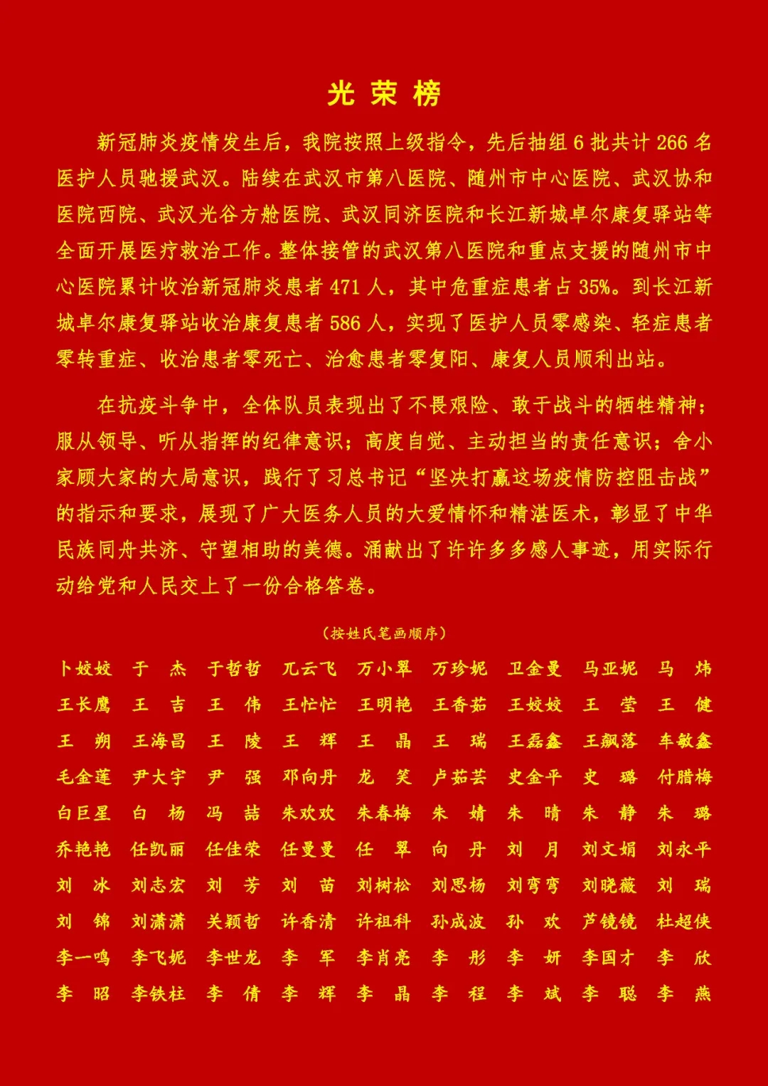 在這場沒有硝煙的戰(zhàn)疫中,醫(yī)療隊員們不負(fù)重托和希望,克服了重重困難,發(fā)揮專業(yè)優(yōu)勢,與武漢市第八醫(yī)院、隨州市中心醫(yī)院一道,開展新冠肺炎患者救治工作,負(fù)責(zé)的3個重癥和危重癥病區(qū)、6個普通病區(qū),累計收治患者471人,累計出院423人;負(fù)責(zé)的長江新城康復(fù)驛站現(xiàn)6個艙累計收治586人,累計康復(fù)461人,轉(zhuǎn)出或代管的125人。無重患,無死亡,至此,醫(yī)療隊全部返回,為陜西人民交上了滿意的答卷。
