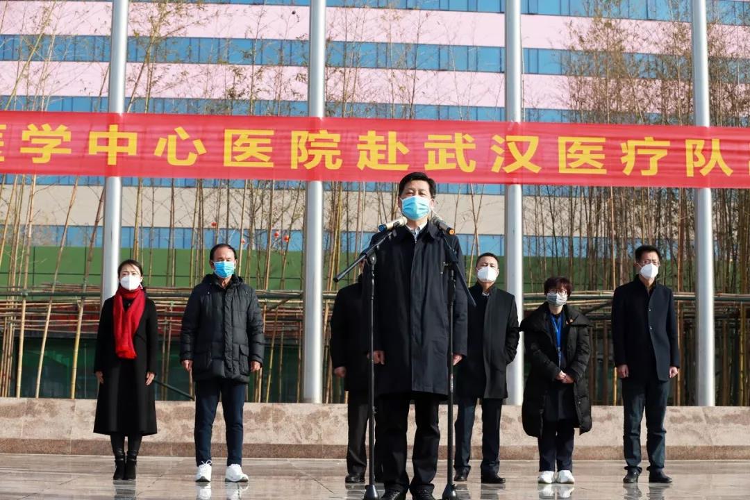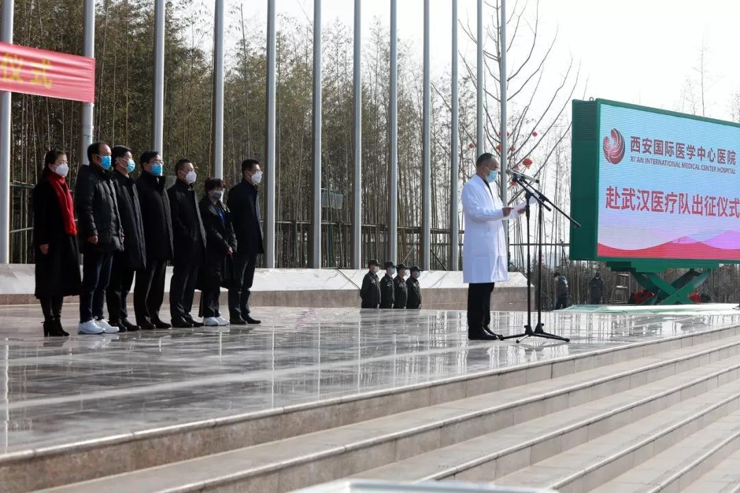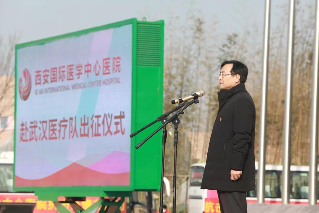 陜西省衛(wèi)健委黨組書記劉勤社說(shuō),我代表省委省政府應(yīng)對(duì)新型冠狀病毒感染肺炎疫情工作領(lǐng)導(dǎo)小組和辦公室,為大家送行。西安國(guó)際醫(yī)學(xué)中心醫(yī)院率先擔(dān)當(dāng)使命,主動(dòng)組織醫(yī)療隊(duì),感謝你們。希望大家堅(jiān)定信心、同舟共濟(jì)、科學(xué)防治、精準(zhǔn)施策,我們盼望大家凱旋歸來(lái)。