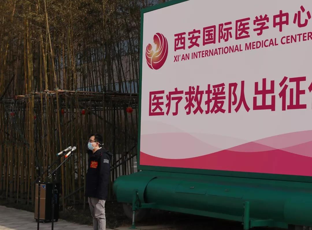2月2日,西安國(guó)際醫(yī)學(xué)中心醫(yī)院舉行赴武漢醫(yī)療救援隊(duì)出征儀式。尹強(qiáng)院長(zhǎng)、王志峰總經(jīng)理、楊峰副院長(zhǎng)及300余名醫(yī)護(hù)人員參加。