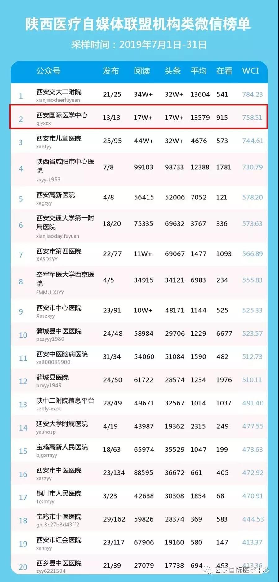 陜西醫(yī)療自媒體聯(lián)盟7月份機(jī)構(gòu)類(lèi)微信榜單