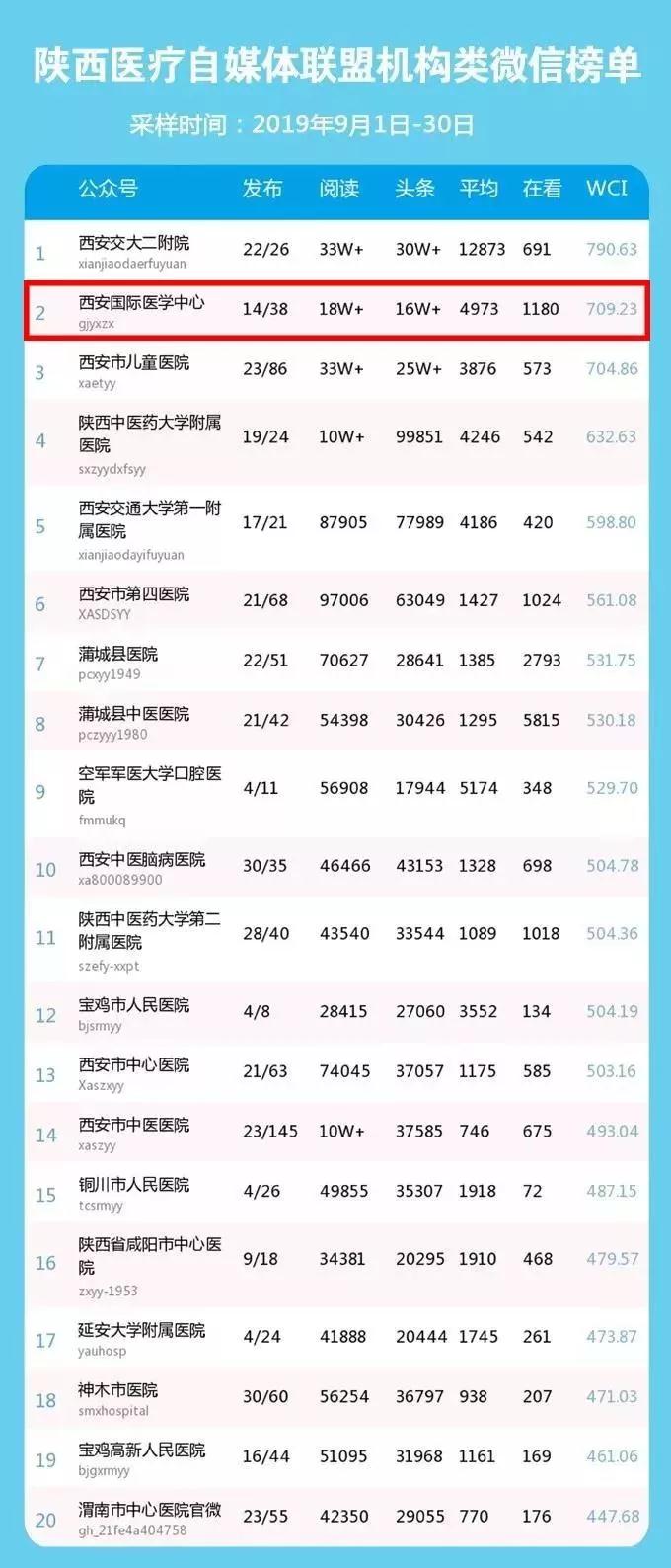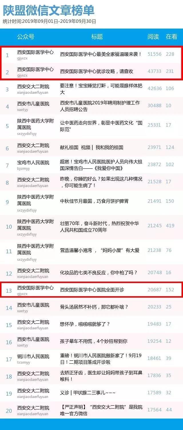 陜西醫(yī)療自媒體聯(lián)盟9月份機(jī)構(gòu)類(lèi)微信榜單