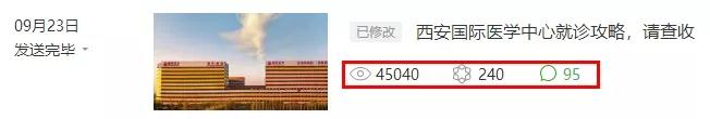西安國(guó)際醫(yī)學(xué)中心開(kāi)業(yè)以來(lái),得到社會(huì)各界的廣泛支持與認(rèn)可,新華網(wǎng)、人民網(wǎng)、央廣網(wǎng)、中國(guó)新聞社、健康時(shí)報(bào)、人民日?qǐng)?bào)海外網(wǎng)、陜西日?qǐng)?bào)、陜西人民廣播電臺(tái)、西安日?qǐng)?bào)、西安晚報(bào)、華商報(bào)、西部網(wǎng)、新浪、搜狐、今日頭條、榮耀西安等各大主流媒體、融媒體走進(jìn)西安國(guó)際醫(yī)學(xué)中心,進(jìn)行了一輪又一輪的的報(bào)道,獲得數(shù)萬(wàn)網(wǎng)友點(diǎn)贊、熱評(píng)。同時(shí),西安國(guó)際醫(yī)學(xué)中心微信公眾號(hào)屢次榮獲陜西醫(yī)療自媒體聯(lián)盟醫(yī)療機(jī)構(gòu)類(lèi)榜單第2名,“狀元文”《西安國(guó)際醫(yī)學(xué)中心就診攻略,請(qǐng)查收》獲得了45040的閱讀量,榮登榜首。位列第二的《西安國(guó)際醫(yī)學(xué)中心最美全家福溫暖來(lái)襲!》更獲得52821的閱讀量。僅“十一”假期7天,西安國(guó)際醫(yī)學(xué)中心微信公眾號(hào)粉絲數(shù)新增10261人!