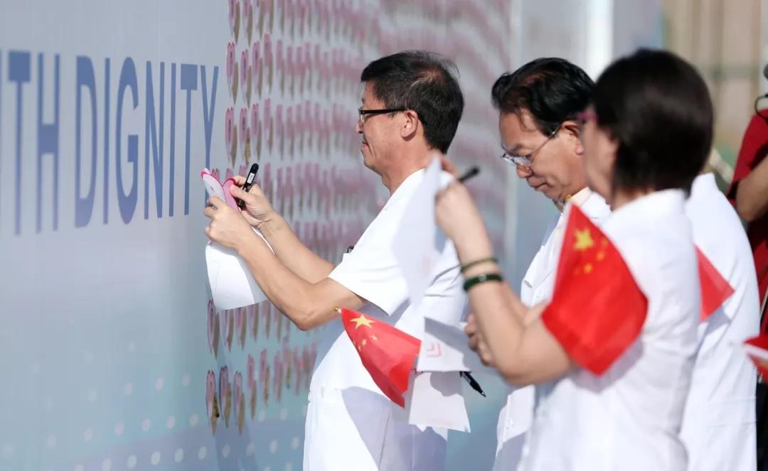 國際醫(yī)學實際控制人劉建申、董事長史今、總裁劉瑞軒、監(jiān)事會主席曹建安、副董事長劉旭、副總裁孫文國、副總裁兼董事會秘書丁震、副總裁王杲、副總裁孫義寬、財務總監(jiān)王亞星、西安國際醫(yī)學中心董事長劉建軍、行政部總經理廖勇,西安國際醫(yī)學中心院長尹強、總經理王志峰等3000余人參加開診儀式。開診儀式由總經理王志峰主持。