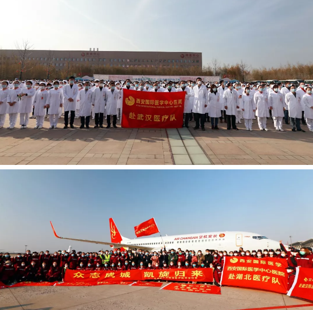 2020年新冠疫情襲來之時,作為一家有使命感和責任感的醫(yī)院,僅開業(yè)半年的西安國際醫(yī)學中心醫(yī)院自備“干糧”, 組建醫(yī)療隊馳援湖北,陸續(xù)在武漢市第八醫(yī)院、隨州市中心醫(yī)院等醫(yī)療機構開展醫(yī)療救治工作,圓滿完成抗疫任務。