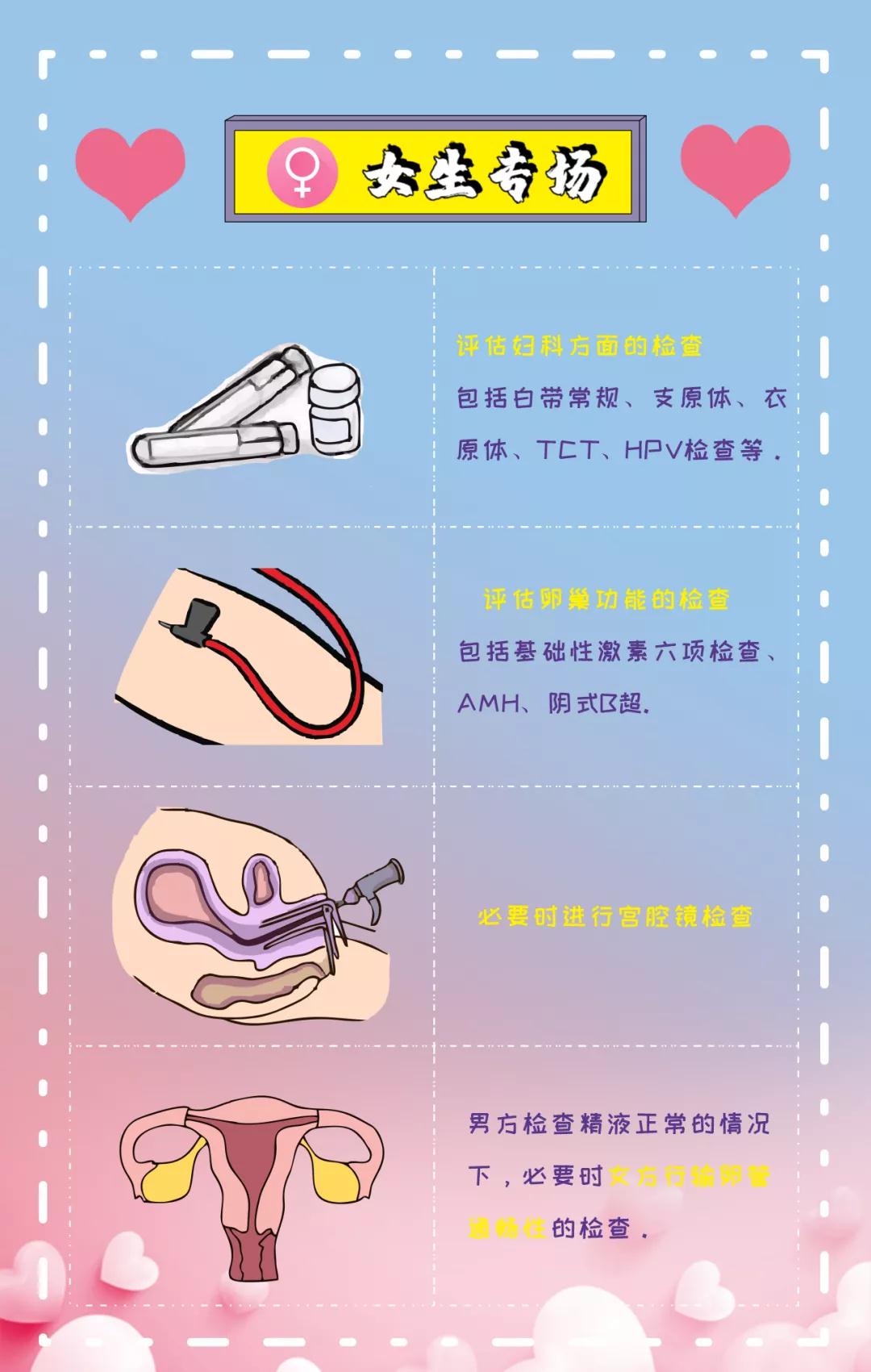 這些主要檢查生殖系統(tǒng)及器官是否有病變,“種子是否健康,土地是否肥沃”,“寶寶未來的家”是否“宜居”。如果發(fā)現(xiàn)問題就有足夠的時間進(jìn)行治療,以免一些疾病影響到卵子、精子的質(zhì)量以及后期備孕成功后對胚胎發(fā)育的影響甚至導(dǎo)致流產(chǎn)。