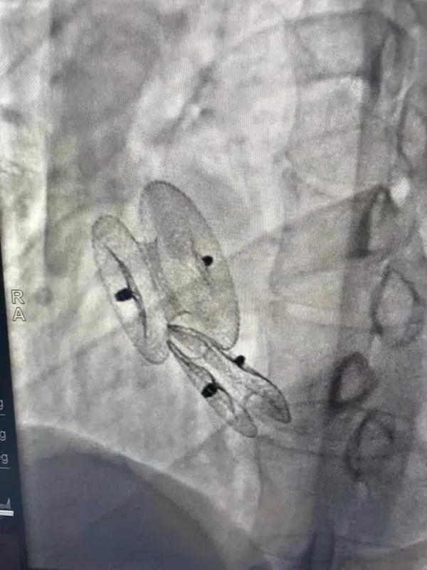 在詳細(xì)了解患者病情,仔細(xì)閱讀患者影像資料后,曾廣偉主任已經(jīng)有了清晰的手術(shù)策略。在精心的準(zhǔn)備和團(tuán)隊(duì)的配合下,曾主任順利的利用兩個(gè)封堵器對(duì)房缺進(jìn)行了封堵。