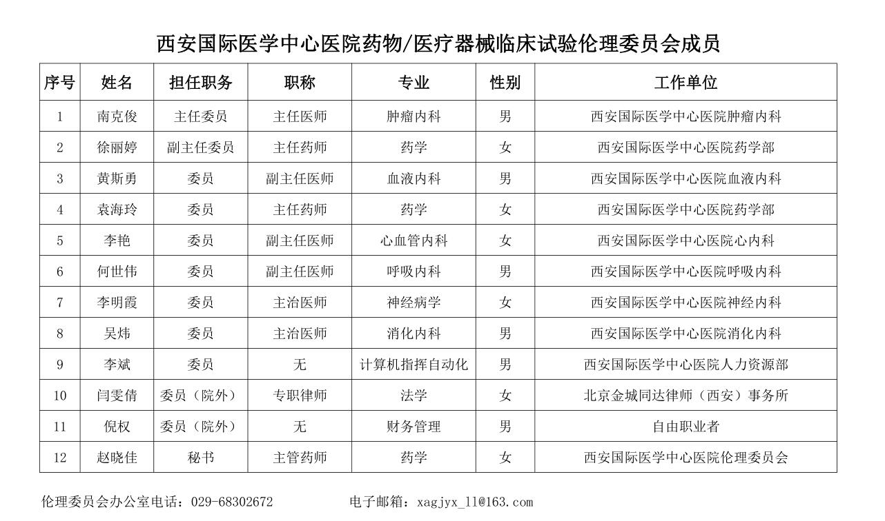 西安國際醫(yī)學中心醫(yī)院藥物/醫(yī)療器械|臨床試驗倫理委員會成員