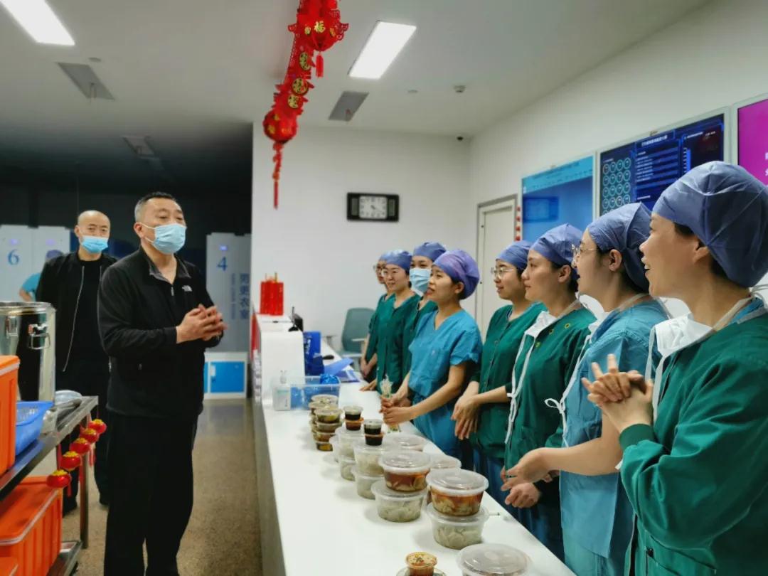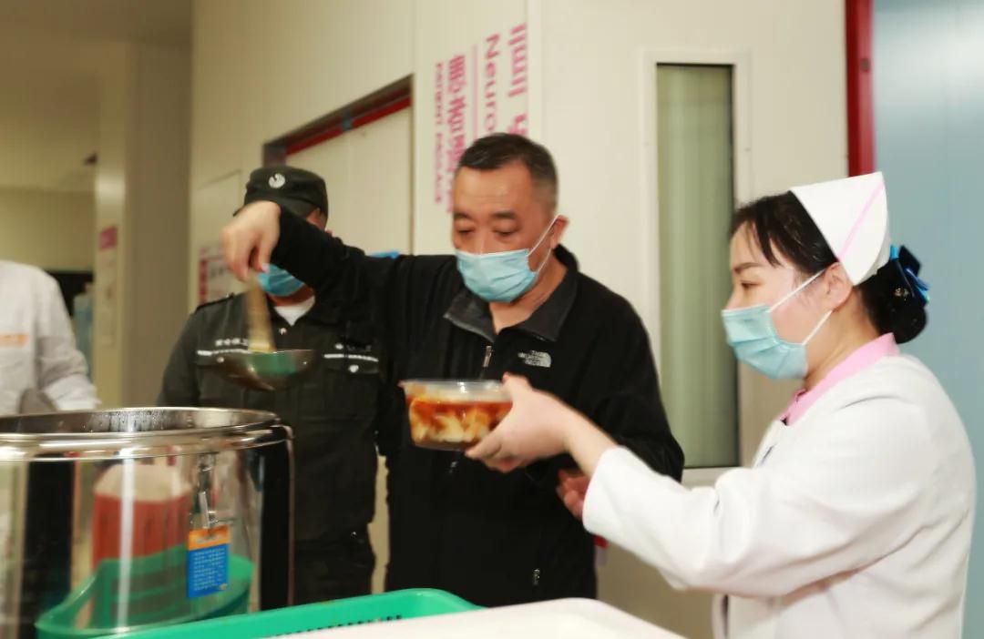 “餃子出鍋了!大家辛苦了!都來吃餃子!”剛出鍋的餃子冒著熱氣,香味彌漫在醫(yī)生辦公室、護(hù)士站。接到熱騰騰的餃子,重癥醫(yī)學(xué)科醫(yī)生張永樂迫不及待地咬了一口,牛肉大蔥餡正是他的最愛?!斑x擇了醫(yī)學(xué)就意味著奉獻(xiàn),看著醫(yī)院的年味越來越濃,病區(qū)里的患者一個(gè)個(gè)好轉(zhuǎn),病區(qū)患者慢慢變少,我還是挺有成就感的?!睆堄罉沸χf。