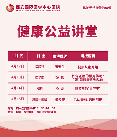 西安國際醫(yī)學(xué)中心醫(yī)院—青年醫(yī)師健康公益講堂預(yù)告