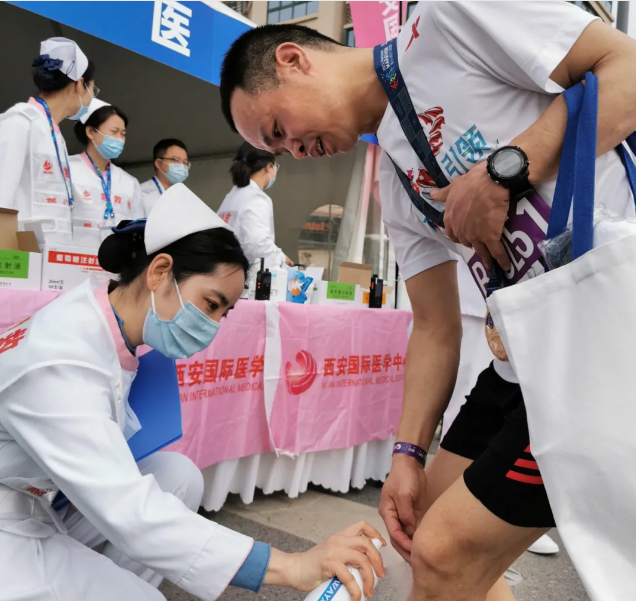 4月17日,西安國際馬拉松(以下簡稱“西馬”)在古都西安如約而至,2021年是西馬舉辦的第五年,也是西馬首次在人間四月天舉辦。西安國際醫(yī)學中心醫(yī)院再度“牽手”西馬,由骨科醫(yī)院、康復醫(yī)院、急救中心組成醫(yī)療保障組,承擔半程馬拉松終點醫(yī)療點和AED急救的醫(yī)療保障任務。