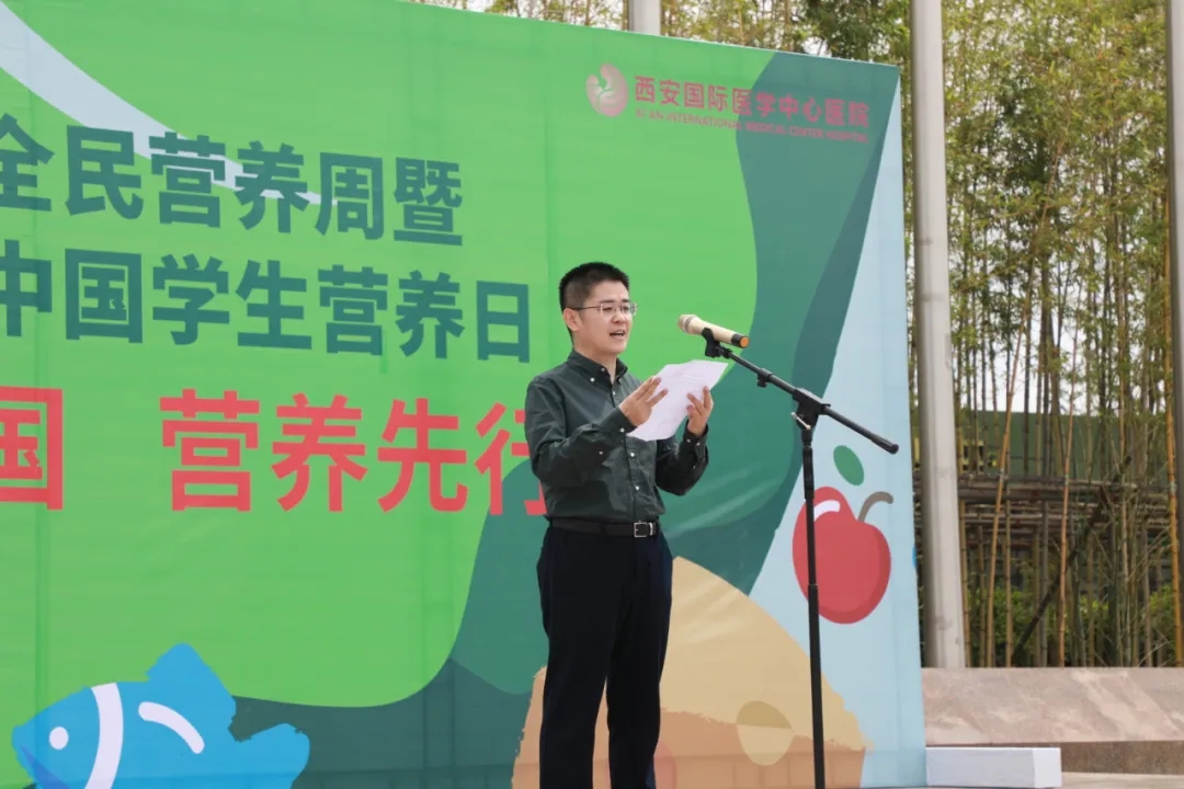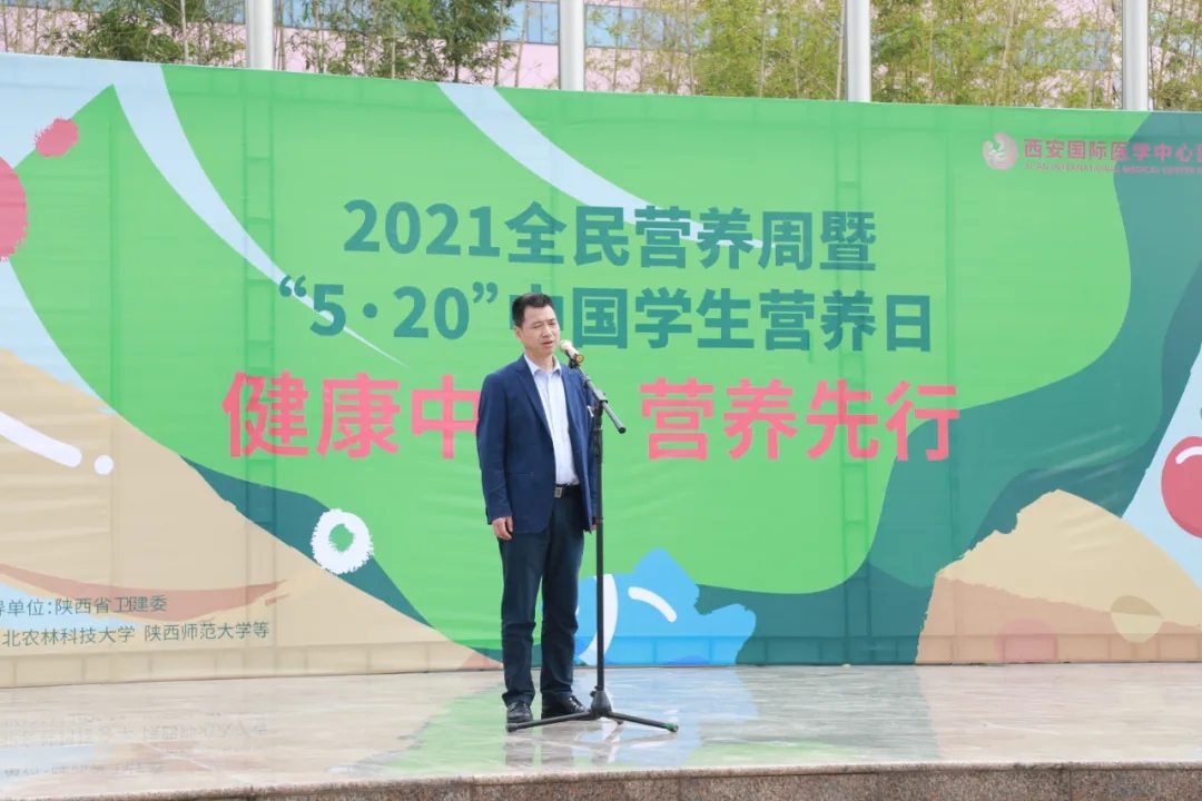 5月16日,2021年“全民營(yíng)養(yǎng)周”陜西啟動(dòng)儀式在西安國(guó)際醫(yī)學(xué)中心醫(yī)院舉行,標(biāo)志著為期一周的陜西省全民營(yíng)養(yǎng)周科普宣教活動(dòng)正式拉開序幕。陜西省衛(wèi)健委副主任余立平、陜西省科學(xué)技術(shù)協(xié)會(huì)學(xué)會(huì)部部長(zhǎng)田世坡、西安國(guó)際醫(yī)學(xué)投資股份有限公司董事長(zhǎng)史今、陜西省中醫(yī)藥大學(xué)副校長(zhǎng)楊景峰、陜西省衛(wèi)健委食品安全標(biāo)準(zhǔn)與風(fēng)險(xiǎn)監(jiān)測(cè)處處長(zhǎng)陳海鴻、陜西省人民醫(yī)院副院長(zhǎng)米濤、陜西省疾病預(yù)防控制中心副主任程永兵、陜西省營(yíng)養(yǎng)學(xué)會(huì)常務(wù)理事長(zhǎng)張瑞娟、西安國(guó)際醫(yī)學(xué)中心醫(yī)院院長(zhǎng)尹強(qiáng)、西安國(guó)際醫(yī)學(xué)中心醫(yī)院總經(jīng)理王志峰、陜西省營(yíng)養(yǎng)學(xué)會(huì)名譽(yù)理事長(zhǎng)周玲、陜西省營(yíng)養(yǎng)學(xué)會(huì)理事長(zhǎng)王楓出席啟動(dòng)儀式。