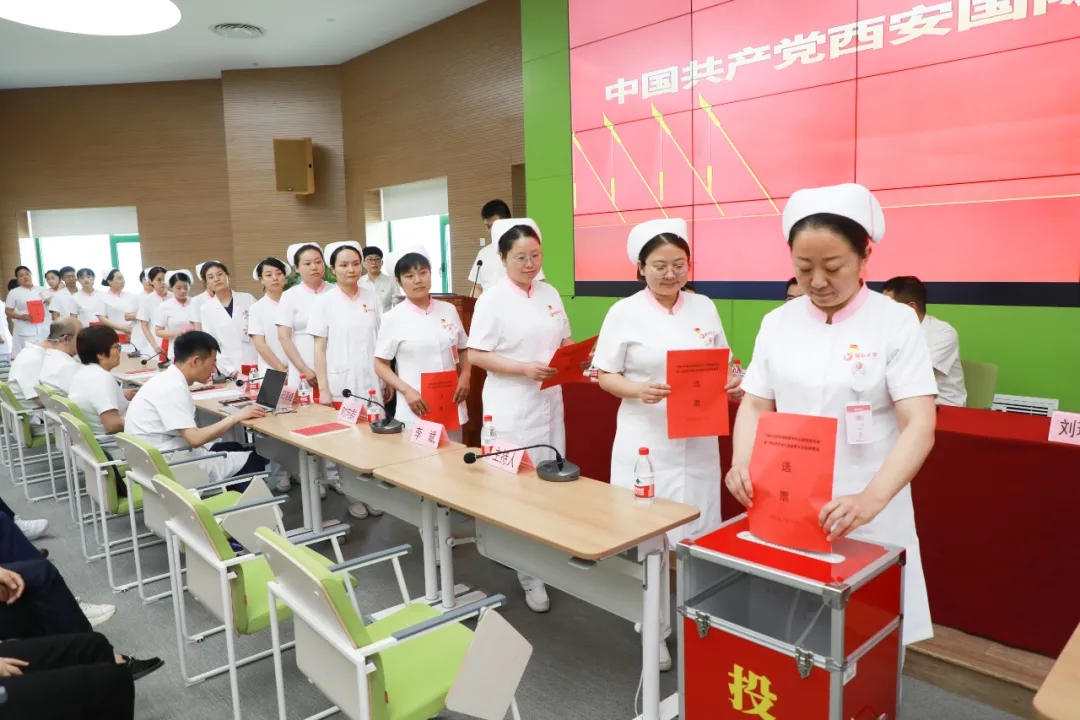 醫(yī)教部副主任馮軍強(qiáng)宣讀了《中共西安國際醫(yī)學(xué)投資股份有限公司委員會關(guān)于同意西安國際醫(yī)學(xué)中心有限公司黨支部升格為黨委的批復(fù)》、《大會選舉辦法》(草案);護(hù)理部主任張敏同志宣讀總監(jiān)票人,監(jiān)計票人員名單,經(jīng)過與會代表審議并通過。