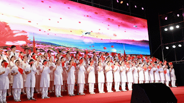 88名醫(yī)務(wù)人員中的預(yù)備黨員、入黨積極分子組成的天使合唱團,此次參賽曲目是《映山紅》。歌曲《映山紅》系電影《閃閃的紅星》的插曲,表達了人民對紅軍的熱愛,對英雄的崇敬之情。