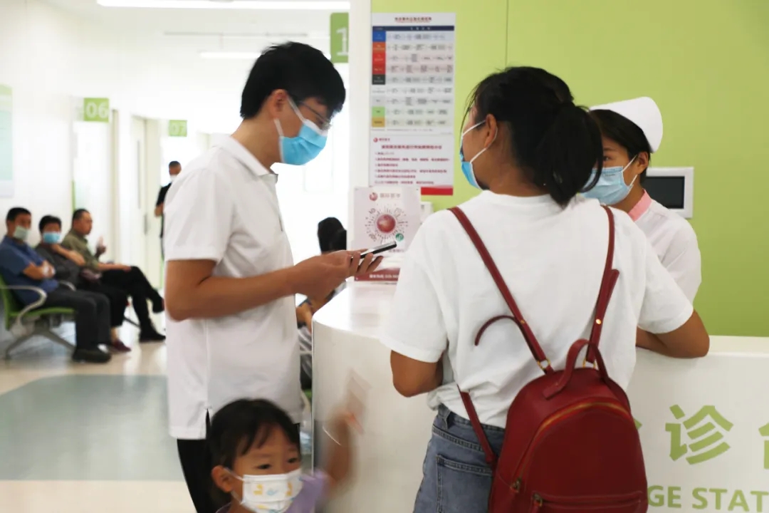 在醫(yī)院各個診區(qū)的咨詢處、分診臺前,醫(yī)護人員也為患者們講解活動流程,耐心地為年齡較大不會使用手機的患者,預(yù)約掛號。