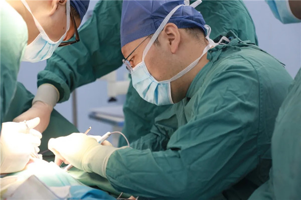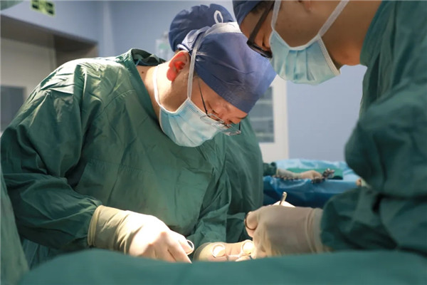 做好了充分準(zhǔn)備與預(yù)案,手術(shù)臺前的劉曉敏鎮(zhèn)定專注,在分離切斷王金花的甲狀腺懸韌帶后,他抽絲剝繭,一根根處理甲狀腺上極血管,繼而結(jié)扎切斷甲狀腺中、下的靜脈、動脈,在由峽部切斷處起始分離甲狀腺背面時,劉曉敏仔細(xì)辨認(rèn)喉返神經(jīng)和甲狀旁腺,確保不傷分毫。一般情況下,手術(shù)至此可以順利結(jié)束。可王金花是位老齡患者,由于氣管軟化,加上腫塊長久壓迫,氣管就像失去回彈力的彈簧,從醫(yī)學(xué)角度看,患者已可以治愈,短期也無生命大礙,可彈不起來的“彈簧”還會重新聚攏在一起,讓老太太喘不上氣。一次手術(shù)能解決的問題,絕不讓患者再受二茬罪,劉曉敏又對王金花實施氣管懸吊術(shù),把“癱瘓”了的氣管朝兩邊拉起,給氣管留出足夠的空間出氣。