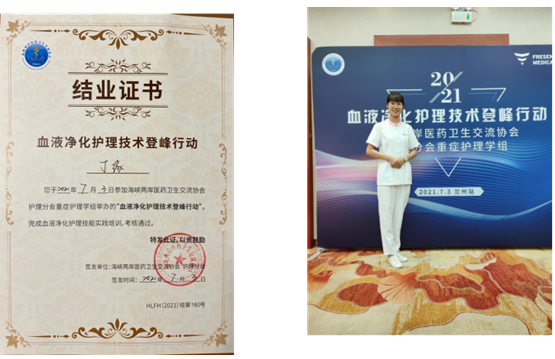 2021年7月,我院血液凈化中心護(hù)士丁緣受邀參加,由海峽兩岸醫(yī)藥衛(wèi)生交流協(xié)會護(hù)理分會重癥護(hù)理學(xué)組舉辦的“血液凈化護(hù)理技術(shù)登峰行動”活動。在此次全國比賽中,丁緣取得了二等獎的優(yōu)異成績。