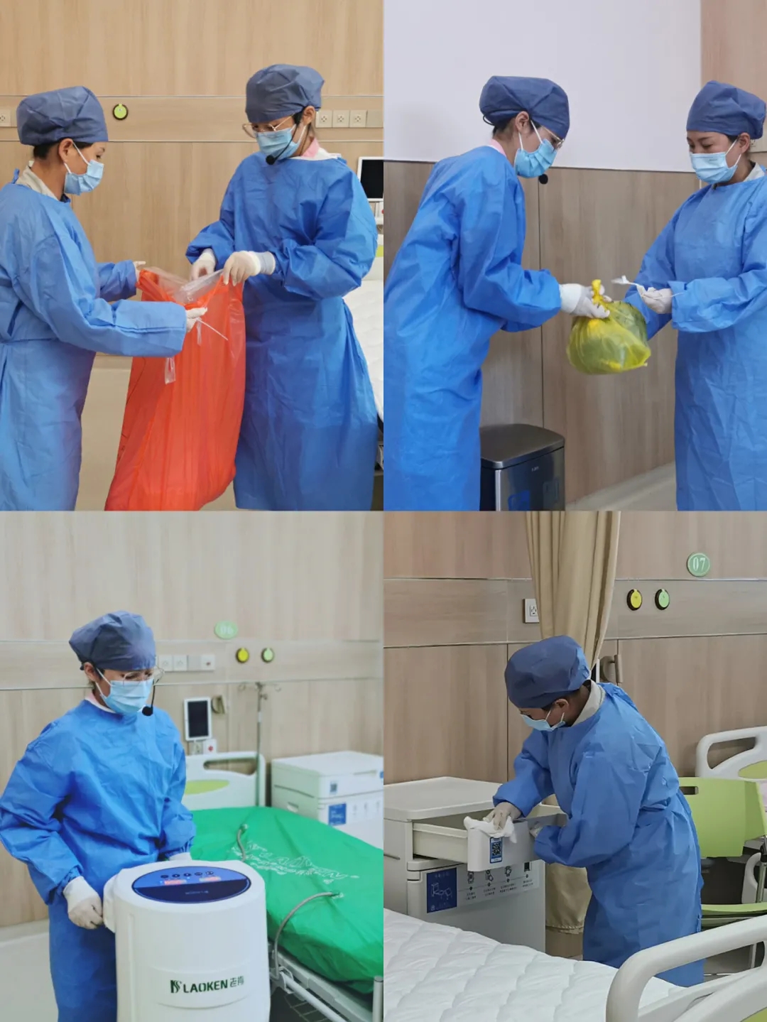 為進一步做好疫情防控常態(tài)化工作,提升醫(yī)院新冠肺炎疫情防控應急處置實戰(zhàn)能力及組織協(xié)調能力,更好的將應急預案應用到實際工作中,以達到出現(xiàn)特殊患者時能規(guī)范、有序進行處置的目的。7月29日下午,由感控部、醫(yī)教部聯(lián)合組織的“病區(qū)出現(xiàn)新冠肺炎患者密切接觸者應急處置演練”在眼科病區(qū)展開。