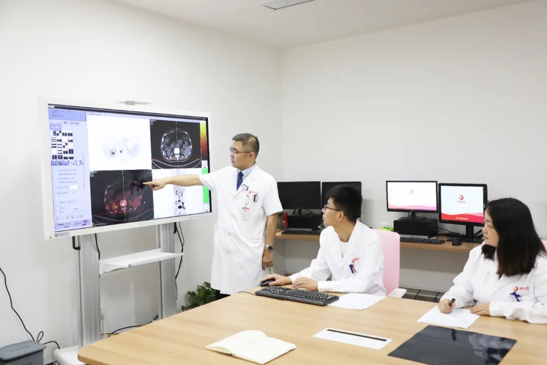 在這個(gè)占地4100多平方米的核醫(yī)學(xué)科檢查區(qū)及病區(qū),王喆帶領(lǐng)團(tuán)隊(duì)開展腫瘤及骨骼、甲狀腺、心臟、腎臟、呼吸、消化等系統(tǒng)的核醫(yī)學(xué)檢查項(xiàng)目,借助PET/CT、SPECT/CT、運(yùn)動(dòng)負(fù)荷心肌灌注顯像監(jiān)護(hù)儀、肺通氣氣體發(fā)生器等先進(jìn)設(shè)備進(jìn)行檢查,針對(duì)甲狀腺相關(guān)疾病,如甲亢、分化型甲狀腺癌術(shù)后進(jìn)行碘131治療、腫瘤骨轉(zhuǎn)移核素治療、磷32治療血管瘤等做相關(guān)診療。