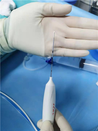 周曉東主任說(shuō),傳統(tǒng)手術(shù)是通過(guò)頸部正面進(jìn)入、走的是一條“康莊大道”,雖然路好走了,但對(duì)頸前區(qū)組織的破壞也大了;而以上提到的消融術(shù)就是現(xiàn)在治療甲狀腺結(jié)節(jié)的另一種方法。即在超聲的全程引導(dǎo)下,將一根1.4mm粗的電極針插入結(jié)節(jié)內(nèi)部,通過(guò)發(fā)射高頻電流,微波,甚至激光使病灶溫度升高,發(fā)生凝固壞死,然后人體會(huì)慢慢將這些壞死的組織吸收掉,結(jié)節(jié)(腫瘤)因此“消失”。