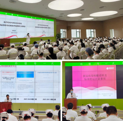 當(dāng)日下午,感控部、檢驗中心對新冠肺炎感染防控及核酸采樣技術(shù)進(jìn)行了全員培訓(xùn),詳細(xì)解讀了《醫(yī)療機構(gòu)內(nèi)新型冠狀病毒感染防控與控制技術(shù)指南(第三版)》、等級醫(yī)院評審手衛(wèi)生指標(biāo)要求、核酸采樣技術(shù)及標(biāo)本轉(zhuǎn)運注意事項。