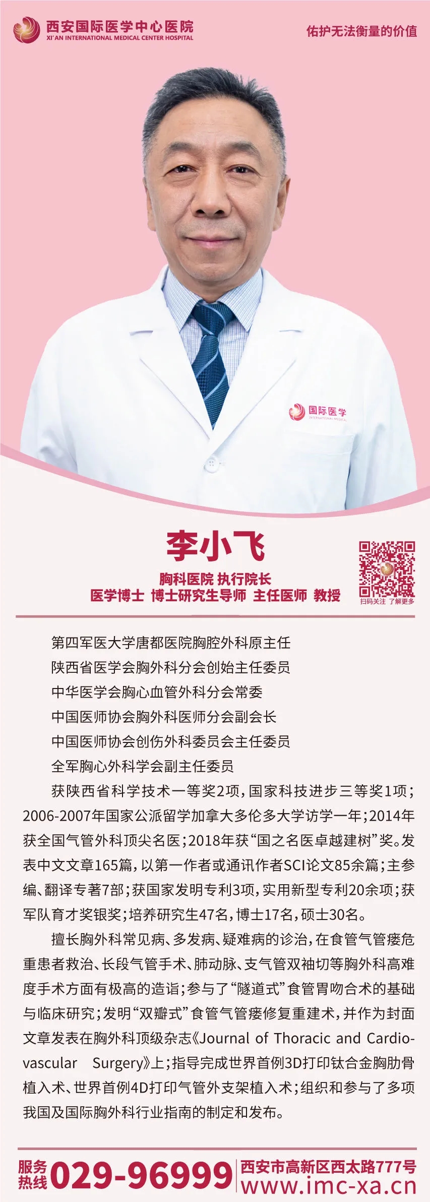 10月21日,著名胸科專(zhuān)家、第四軍醫(yī)大學(xué)唐都醫(yī)院胸腔外科原主任李小飛教授加盟西安國(guó)際醫(yī)學(xué)中心醫(yī)院,任胸科醫(yī)院執(zhí)行院長(zhǎng),為醫(yī)院發(fā)展注入強(qiáng)勁動(dòng)力,促進(jìn)醫(yī)院專(zhuān)業(yè)學(xué)科水平躍上新臺(tái)階。