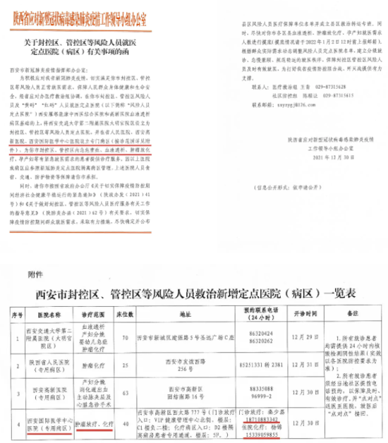 12月31日,陜西省應(yīng)對(duì)新冠肺炎疫情工作領(lǐng)導(dǎo)小組辦公室發(fā)布《關(guān)于封控區(qū)、管控區(qū)等風(fēng)險(xiǎn)人員就醫(yī)定點(diǎn)醫(yī)院有關(guān)事項(xiàng)的函》,指定西安國(guó)際醫(yī)學(xué)中心醫(yī)院作為近期隔離管控區(qū)人員放化療定點(diǎn)醫(yī)院。