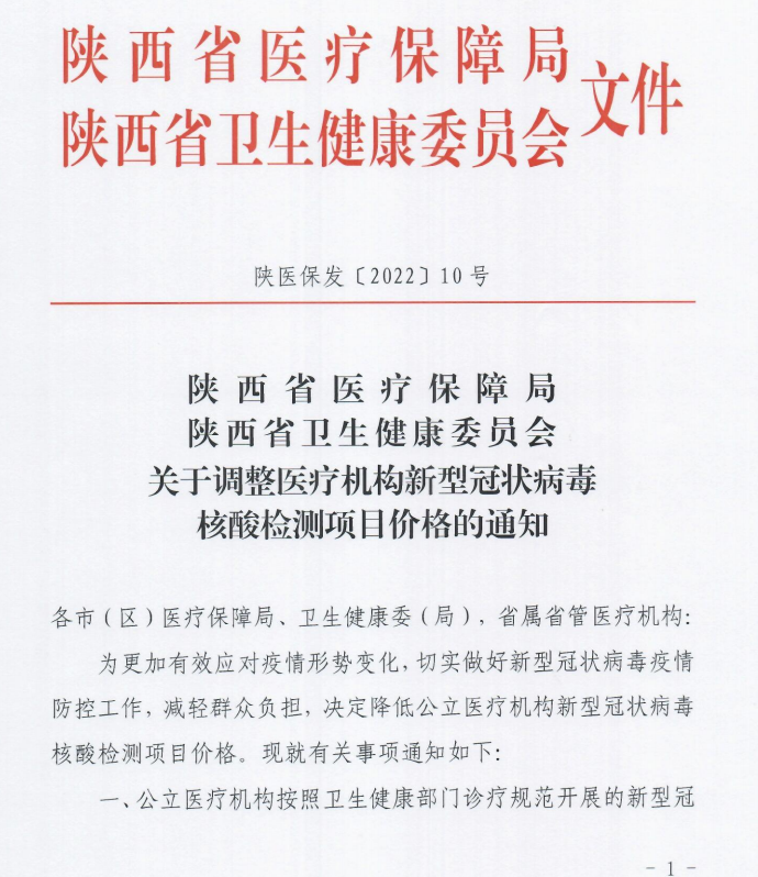 關(guān)于調(diào)整醫(yī)療機(jī)構(gòu)新型冠狀病毒核酸檢測項目價格的通知