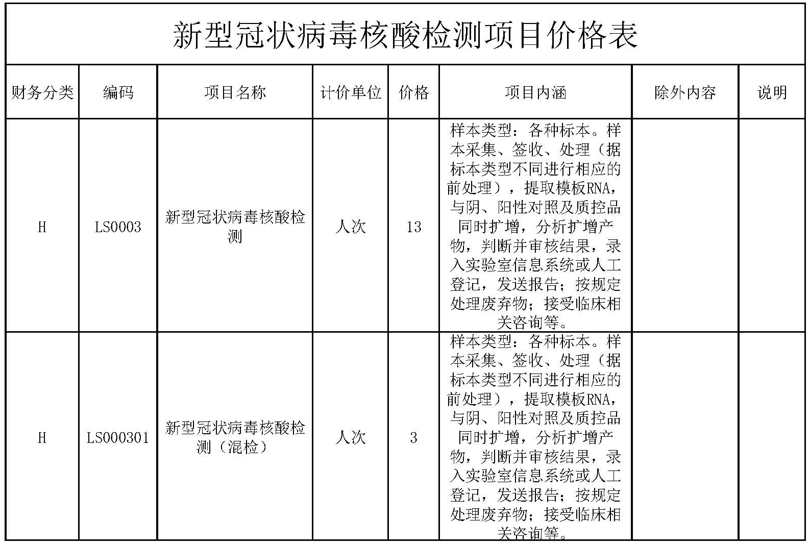 新型冠狀病毒核酸檢測(cè)項(xiàng)目價(jià)格表