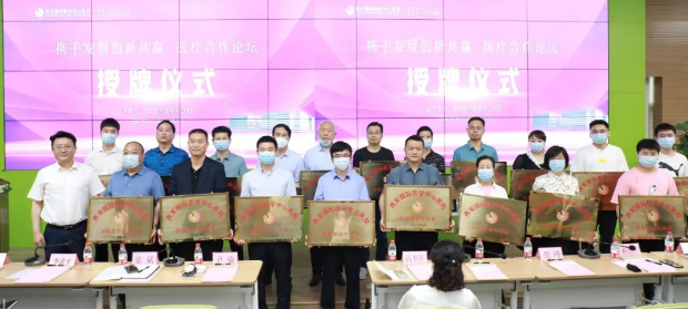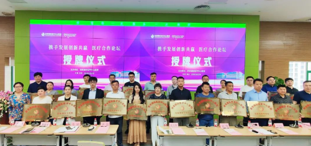 隨后尹強(qiáng)院長與各機(jī)構(gòu)代表完成合作簽約儀式,李武平副院長、張斌副院長為參會(huì)的各家醫(yī)療機(jī)構(gòu)授牌并合影留念。