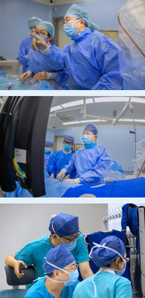 打通心路,解開心結(jié)。高風(fēng)險、高難度的冠心病手術(shù)正是李偉杰擅長的領(lǐng)域。正向?qū)Ыz不能通過閉塞的血管,那就采取逆向開通血管,推送逆向?qū)Ыz到血管真腔,正向?qū)Ыz“接應(yīng)”,交換為超長導(dǎo)絲建立軌道,沿超長導(dǎo)絲軌道將帶有支架的球囊穿行在心臟的江河湖海,抵達目的地——右冠遠端狹窄的血管段,充液后的球囊擴張撐開狹窄的血管,隨后收縮球囊使支架留在血管內(nèi),第一枚支架放置完畢。因為又粗又大的右冠狀動脈全程彌漫狹窄病變,由遠端向近段一次植入支架,隨著最后一枚支架釋放,球囊撤出,王先生的血流瞬間通暢,冠狀動脈造影術(shù) 經(jīng)皮冠狀動脈內(nèi)支架置入術(shù)很成功。