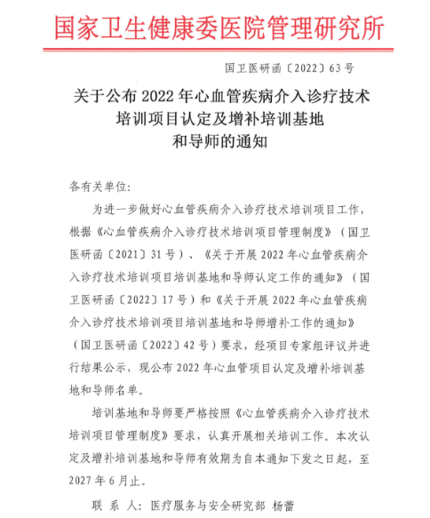 近日,國家衛(wèi)生健康委醫(yī)院管理研究所公布了2022年心血管項目認(rèn)定及增補培訓(xùn)基地和導(dǎo)師名單(《關(guān)于公布2022年心血管疾病介入診療技術(shù)培訓(xùn)項目認(rèn)定及增補培訓(xùn)基地和導(dǎo)師的通知》國衛(wèi)醫(yī)研函〔2022〕63號),繼2021年成為國家冠心病介入培訓(xùn)基地后,西安國際醫(yī)學(xué)中心醫(yī)院再獲批國家心律失常和結(jié)構(gòu)性心臟病介入培訓(xùn)基地。