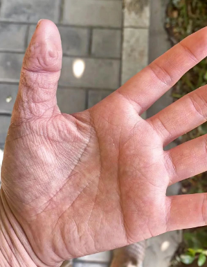 泡白的雙手,濕透的衣服……