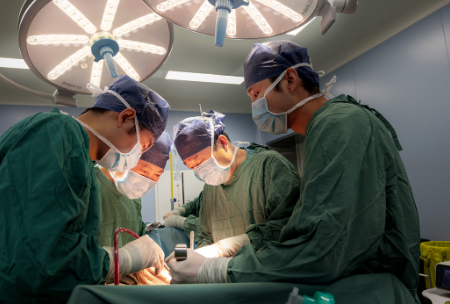 手術(shù)考驗的不僅僅是主刀醫(yī)師的功力,也檢驗一個團隊的整體協(xié)作能力。麻醉手術(shù)中心副主任王彬榮為患者實施全身麻醉,全程保駕護航,王學(xué)智主任的手術(shù)刀取上腹正中切長約18cm的口,依層入腹,探查到起源于胃大彎中上部的胃腸間質(zhì)瘤,腫瘤已經(jīng)累及胃、胰體尾聯(lián)合脾臟及橫結(jié)腸,這與術(shù)前的判斷吻合。腫瘤與胰腺體尾部及橫結(jié)腸左半部分關(guān)系密切,不易分開,因此需要多臟器切除才能達到根治性切除的效果。術(shù)中,手術(shù)團隊需要直面有可能出現(xiàn)的大出血、肺大泡破裂、腫瘤破裂等挑戰(zhàn)。