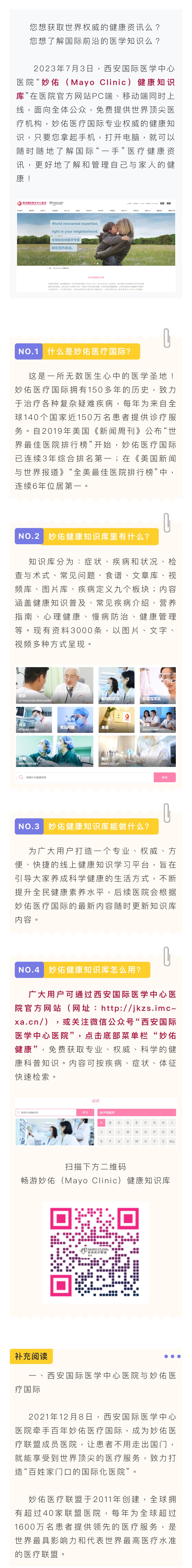 隨時(shí)隨地獲取國(guó)際一手健康知識(shí)!西安國(guó)際醫(yī)中心醫(yī)院“妙佑健康知識(shí)庫(kù)”全新上線(xiàn)!